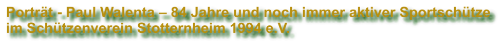 Es grenzt wohl schon an ein Wunder. Unser Paul, geb. am 19.09.1928, ist in unserem Verein nicht etwa ein ruhendes Mitglied, wie es ihm eventuell in seinem Alter zustehen würde - nein das ganze Gegenteil ist der Fall! Ohne Übertreibung kann man sagen, dass er zu den Aktivsten gehört. Kaum zu glauben - nicht nur in den Disziplinen Luftgewehr - und KK-Gewehr Auflage,sondern auch in der Trap -Disziplin hat unser Paul oft die Nase vorn! Es ist keine Seltenheit, dass da beim Training aber auch bei der Kreismeisterschaft 10 bis 13 Wurfscheiben vom Himmel fallen - und das zum großen Teil mit dem 1. Schuss! Wie das unser Paul macht ist uns allen unklar - wo nimmt dieser nicht mehr ganz junge Mann die Kraft und den Elan her? Selbst sagt er das in seinem Leben neben der Familie, die natürlich an der 1. Stelle steht, der Schießsport und der Verein Platz 2 einehmen.Aber das ist es nicht alleine, denn der Verein profitiert auch von Paul Walentas Vorbildwirkung. Wenn ich als "alter Mann" , so agitiert Paul, noch an schießsportlichen Wettkämpfen teilnehme, könnt ihr als jüngere doch nicht etwa zurückstehen! Das dieses nicht ohne Wirkung bleibt, kann man sich leicht vorstellen. Unser Paul kann aber auch nicht nur gut schießen, sondern bereichert auch stets mit seinem Witz und seinem Humor unser Vereinsleben im Freizeitbereich. Besonders freuen wir uns natürlich, dass er nicht nur ein geselliges Mitglied ist, sondern wesentlich zu unserer bisherigen Erfolgsbilanz bei Kreis- und Landesmeisterschaften und beim Landespokal beigetragen hat. Ja wie kam Paul nun eigentlich zu dieser Sportart? Am 19.09.1928 in Schwerborn geboren, besuchte er zunächst die Schule und nahm anschließend eine Lehre als Fleischer auf. Gerade 17 Jahre alt geworden musste er seine Lehre unterbrechen und als Flackhelfer in den Krieg ziehen. Glücklicherweise überlebte er und setzte nach der Kriegsgefangenschaft, 1946 seine Lehre erfolgreich fort. Nach entsprechenden Qualifizierungen war er dann bis zu seinem Eintritt in den Ruhestand als Verkaufsstellenleiter in der Gemeinde Stotternheim tätig. Ursprünglich war sein Interesse für das Schießen während der Ausbildung am K98 geweckt worden, welches aber durch die Kriegsereignisse und sein persönliches Erleben zunächst in das Gegenteil umschlug. Im Laufe der Jahre kehrte aber die Lust am präzisem Scheibenschießen zurück, was aber zunächst nur mit dem Luftgewehr möglich war. Paul entdeckte dabei sein Talent, wollte sich aber im vergangenem System nicht schießsportlich organisieren lassen. Um so erfreuter war er als er erfuhr, dass er nach der Wende diesen Sport nun unter freien Bedingungen ausüben kann. Paul Walenta ist seit 1998 Mitglied im Schützenverein Stotternheim 1994 e.V. und hat seit dieser Zeit unzählige sportliche Erfolge auf Vereins- Kreis und auch auf Landesebene erzielt. Es ist somit kein Wunder, das Paul auf Grund seiner schießsportlichen Leistungen, seiner Verdienste für den Verein und somit auch für das gesamte Thüringer Schützenwesen mehrfach auf allen genannten Ebenen so wie auch vom Deutschen Schützenbund ausgezeichnet wurde. Wir wünschen unserem Paul Walenta als Verein und als seine Freunde , die beste Gesundheit und dass er noch viele Jahre Freude und Spaß am Schießsport und am Vereinsleben hat.Text und Foto Rolf Jaksch